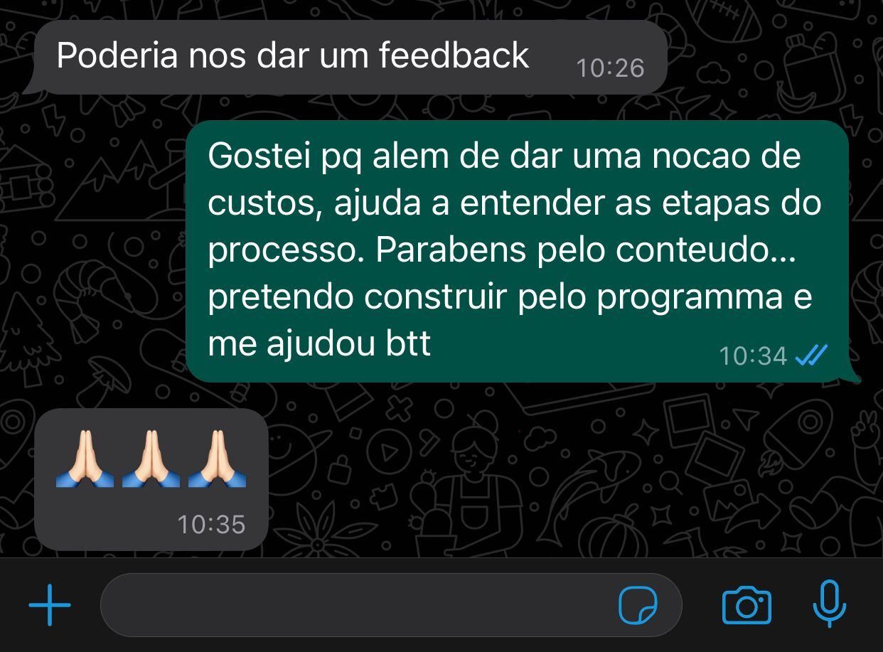 Tenho mais de 10 anos de experiência nesse segmento e já construí mais de 250 unidades desde 2014.